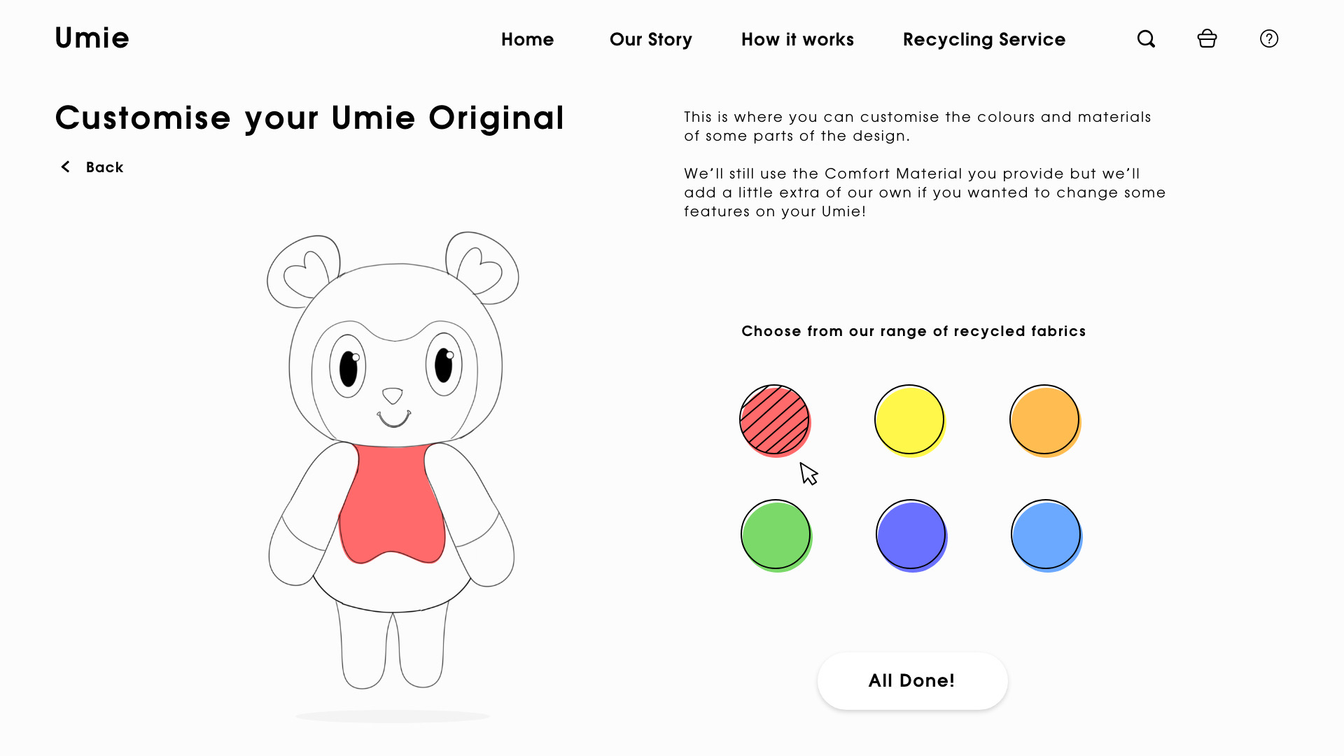 Sustainable StrategiesOriginal Umie characters can be customised with stock fabric collected from recycled toys